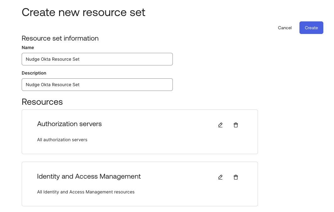 Finalize the Resource Set. Once all resources are added, click Create to save and finalize the resource set.
