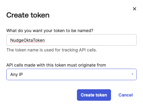 The Okta connected app uses an API integration between Nudge Security and Okta in order to share information and perform certain actions between the two services. To enable the Okta connected app, you'll need to create an API token in Okta and configure it in Nudge Security. This article describes the configuration process.