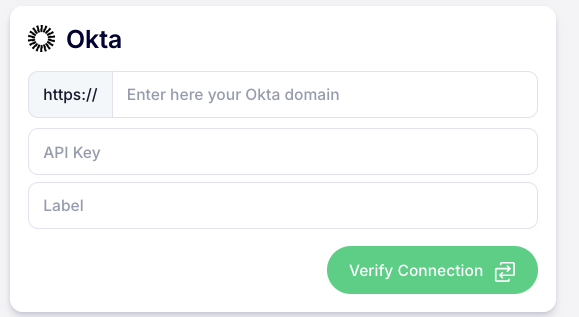In the Okta integration settings, input your Okta domain (e.g.,