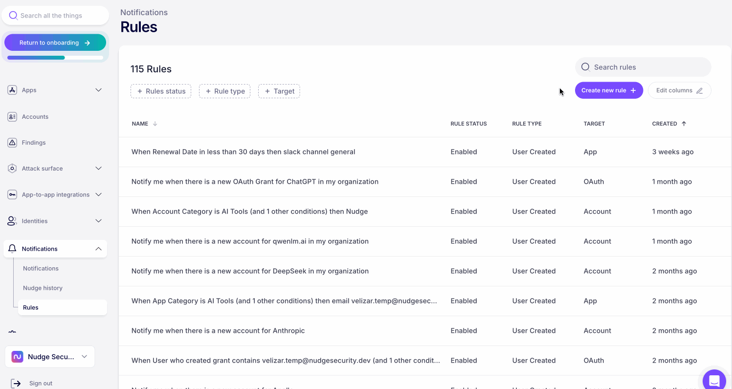 Keeping your billing contacts informed about upcoming subscription renewals is an important part of managing your SaaS environment. Nudge Security lets you configure notification rules to automatically alert key stakeholders when a renewal is coming up, so nothing falls through the cracks.