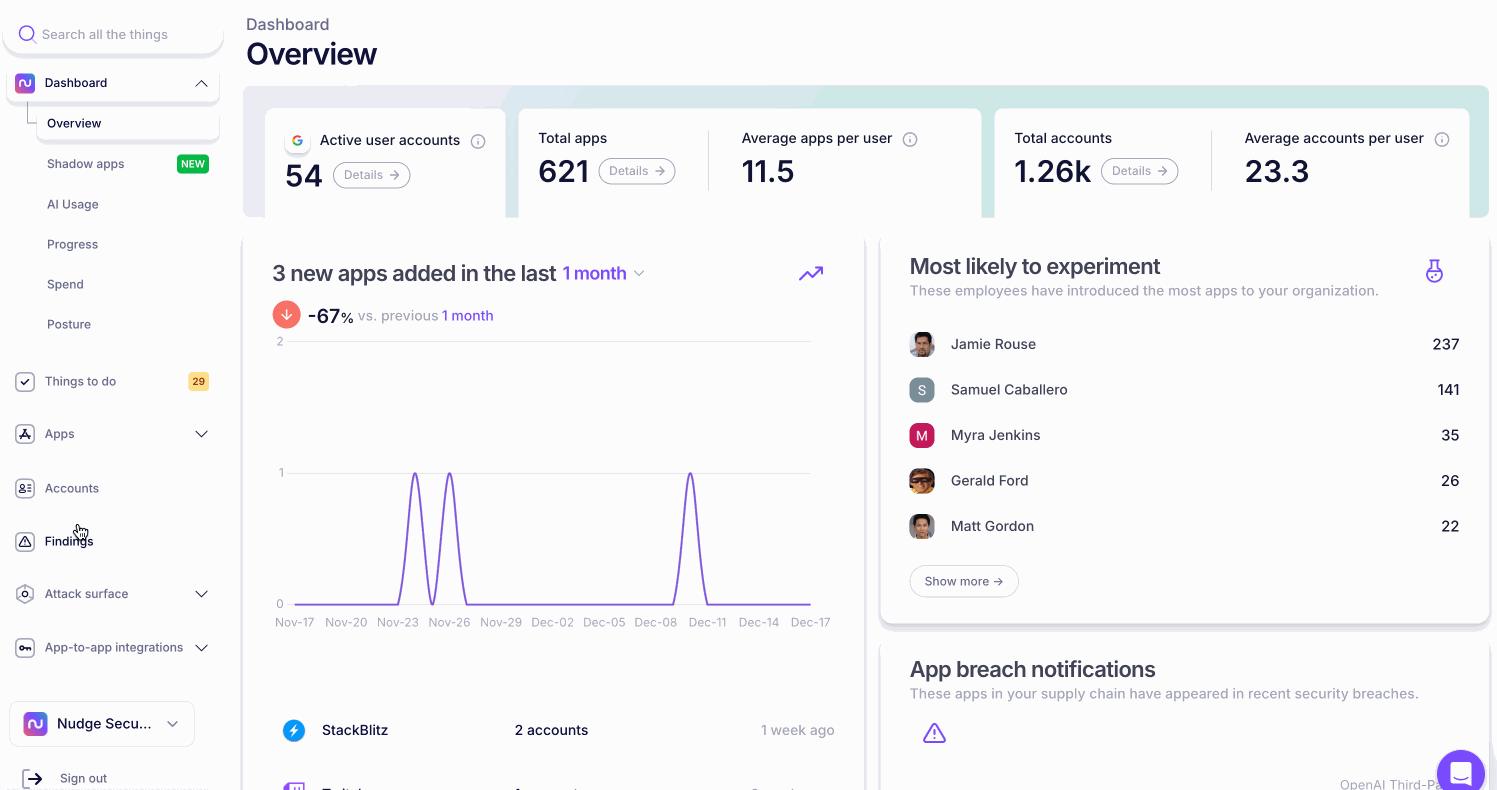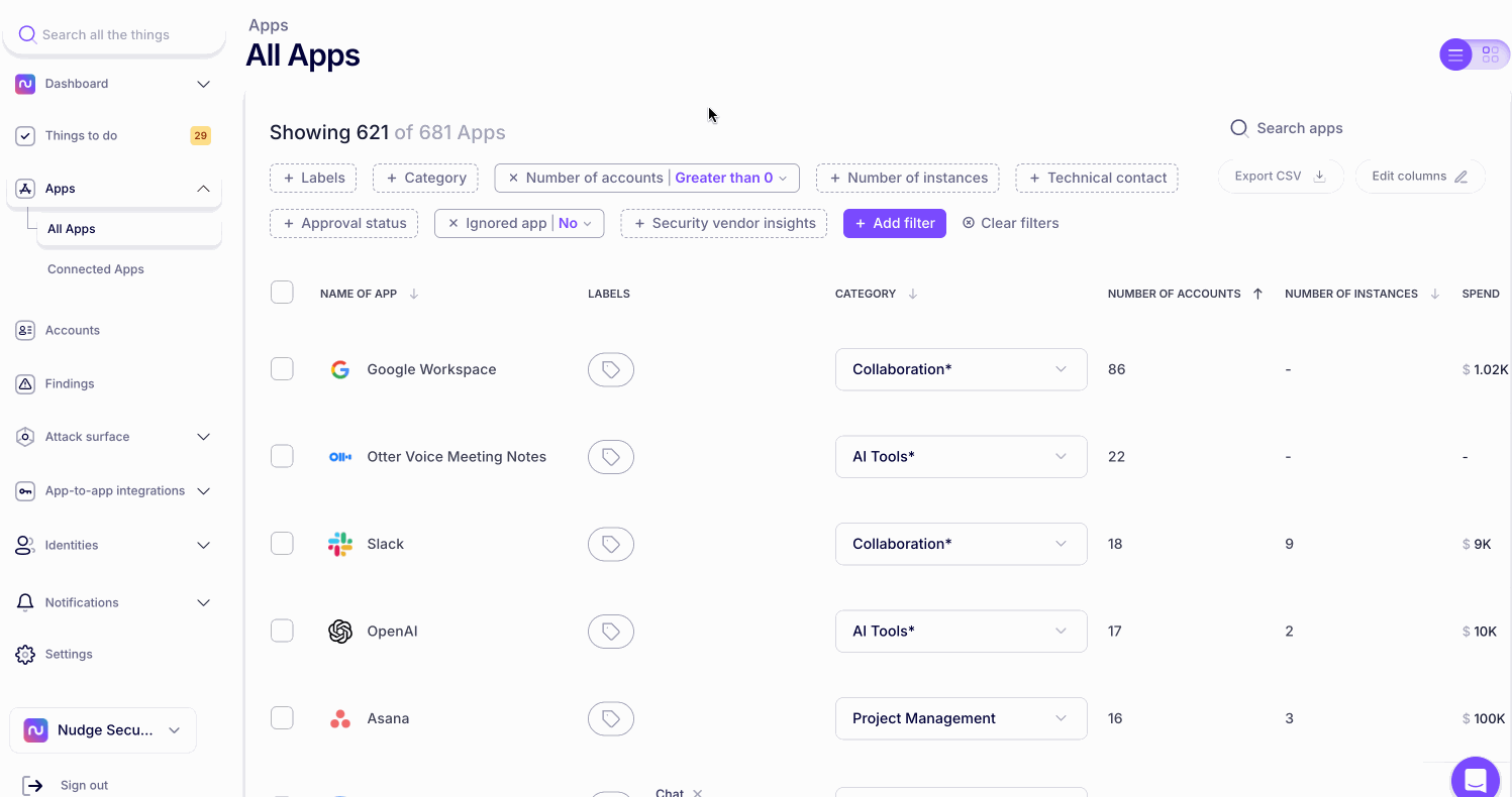 If you click into a specific app you can review the nudge history for that individual app. In this view you can also filter by responded or partially responded nudges.