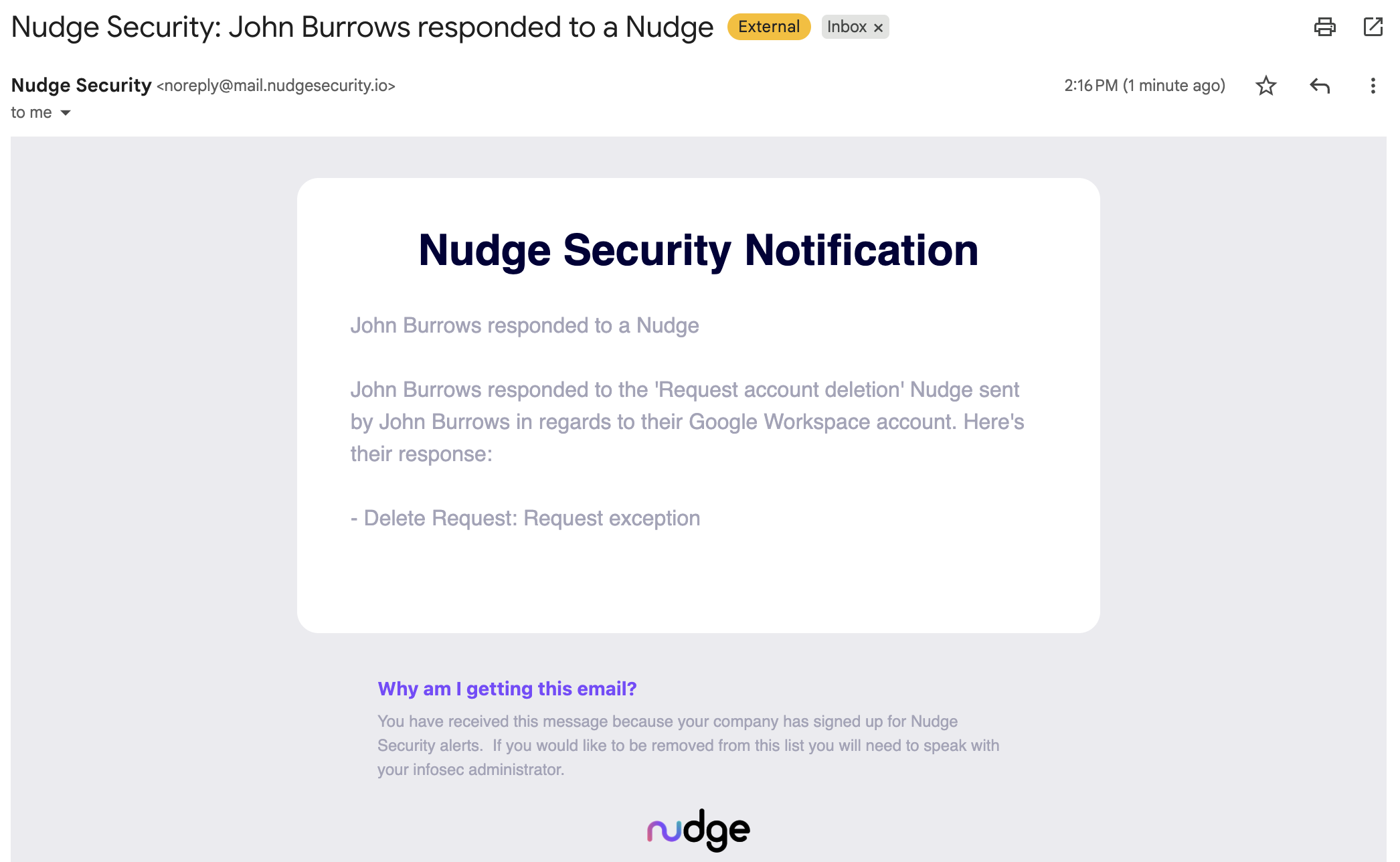 Nudge type: If you are concerned about responses for a specific nudge type you can set the alert to go out only for that nudge.