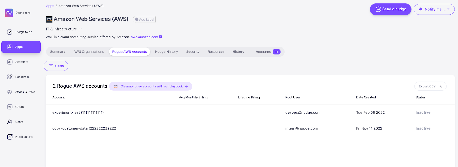 You can also see a list of the unmanaged AWS accounts that aren’t currently associated with an AWS Organization, helping you catch rogue or abandoned accounts before they introduce unnecessary costs or risks.