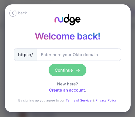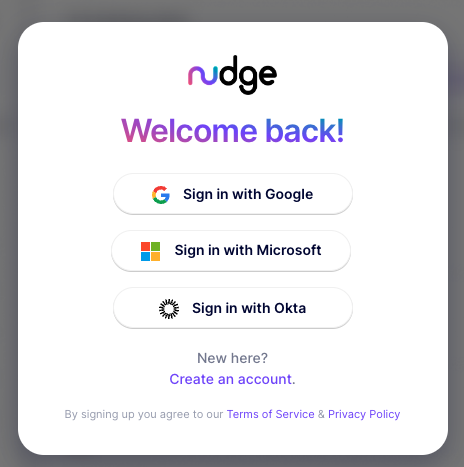 When your Okta SSO setup is complete, you can log into Nudge Security as usual: